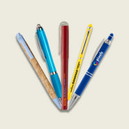 Choose from a variety of sustainable materials including bamboo, wheat straw and recycled plastics. We also offer refillable pens for those set on sustainability.