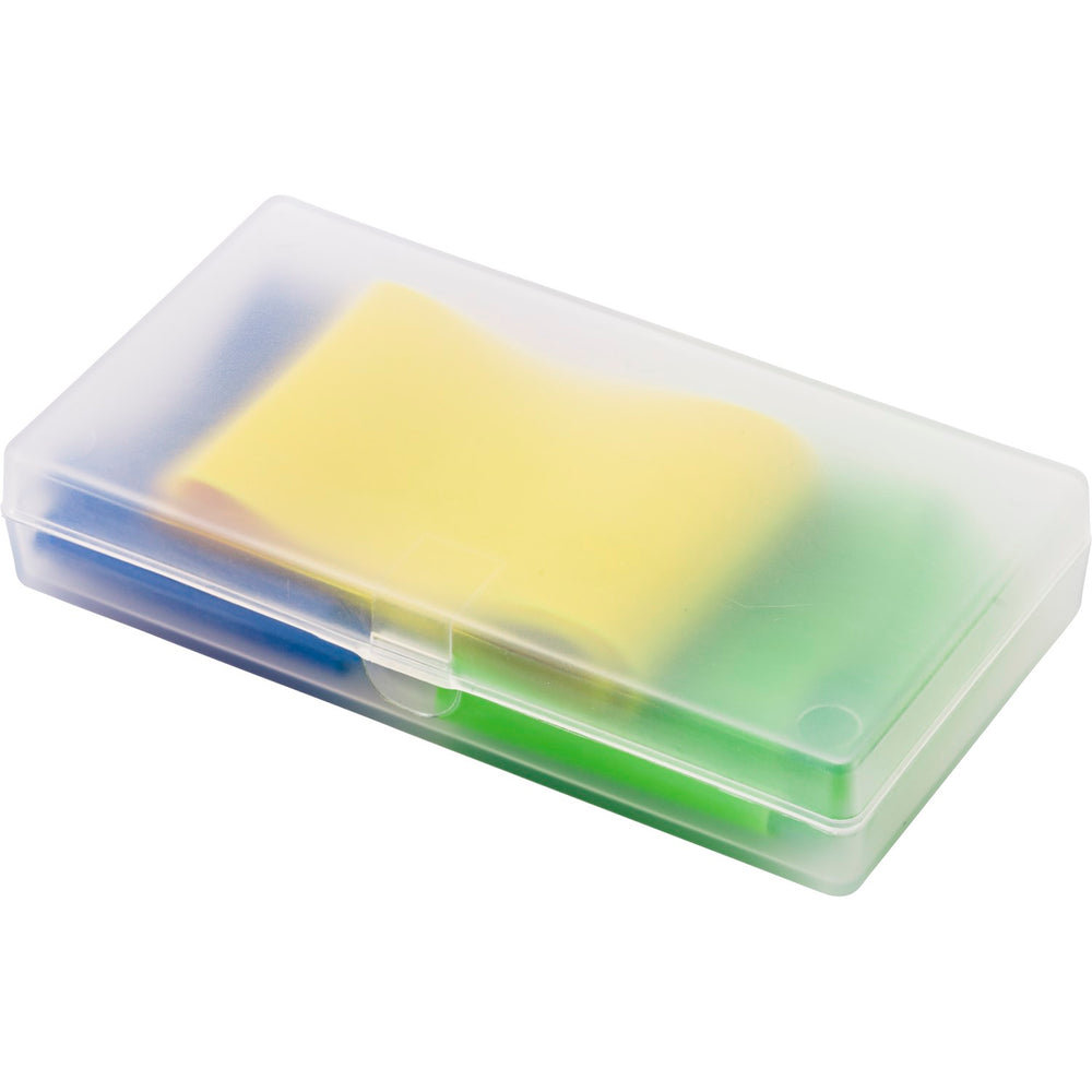 Set of three elastic sports bands, each with different resistence. Set packaged in plastic box.