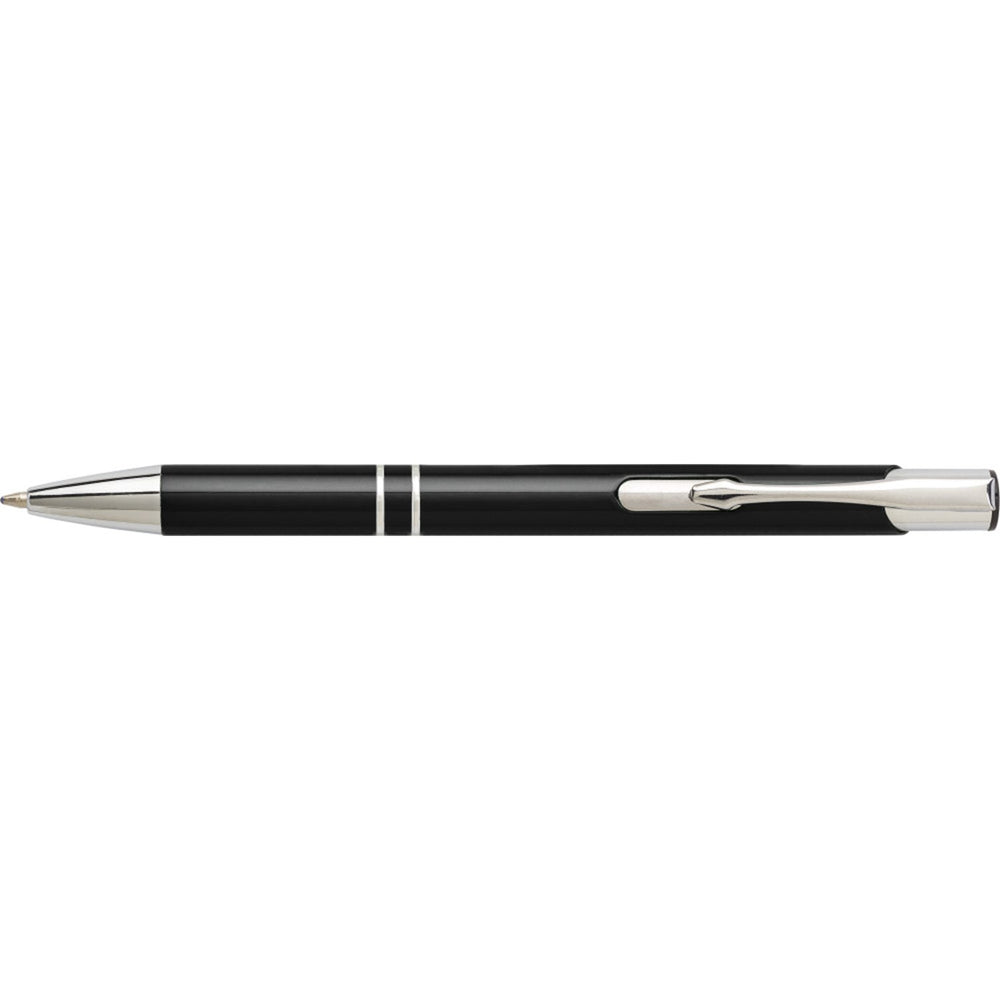 Aluminium ballpen with UV coating, silver coloured tip, two rings, arrow shaped clip, and tip. Blue ink. Provided with German Dokumental Ink.