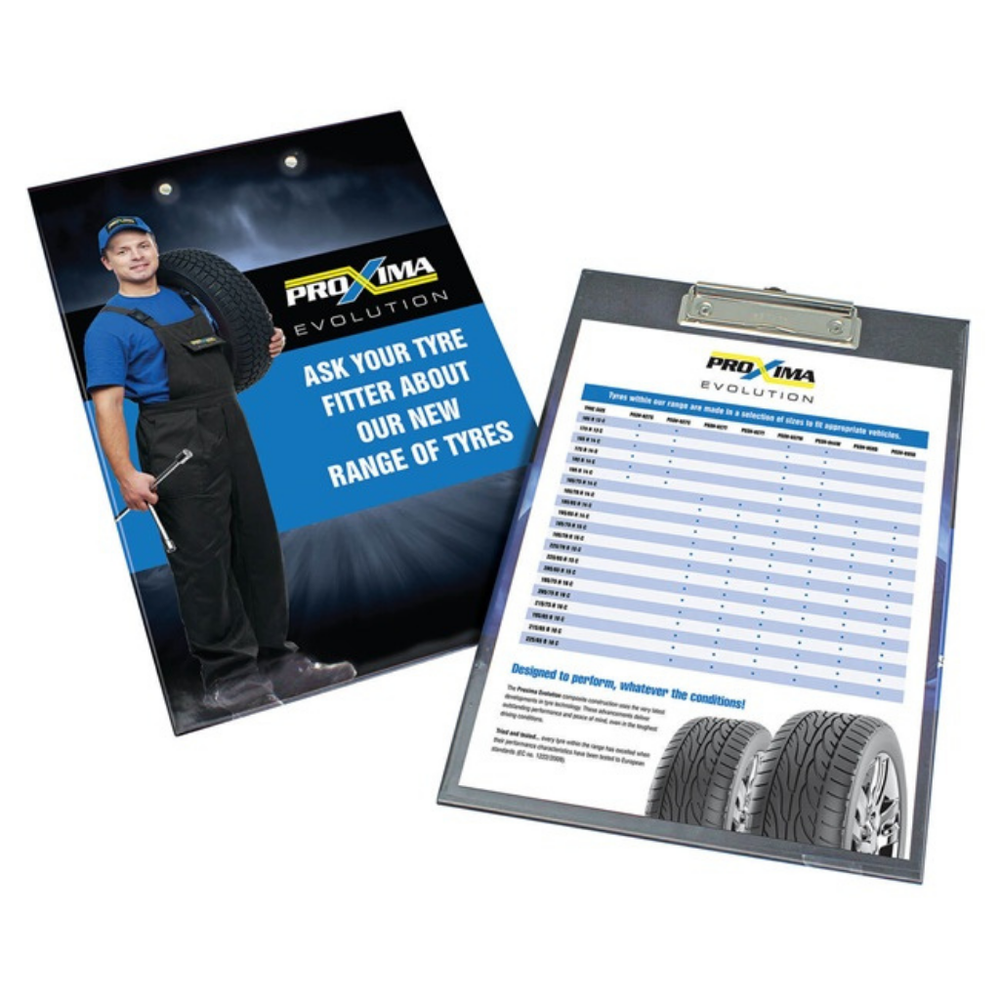 Gloss laminated A4 hard back paper over board clipboard. Printed 4 colour process both sides. Bulk packed. Manufactured in the UK.