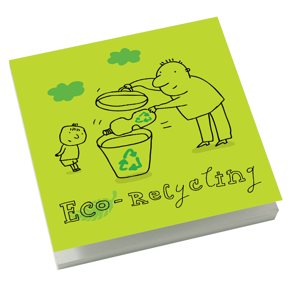 Cover Sticky note 3"x3" containing 50 sheets of recycled sticky note paper with a wraparound 300gsm recycled white card cover, gummed along the top edge. Bulk packed. Manufactured in the UK in our Carbon Zero factory.