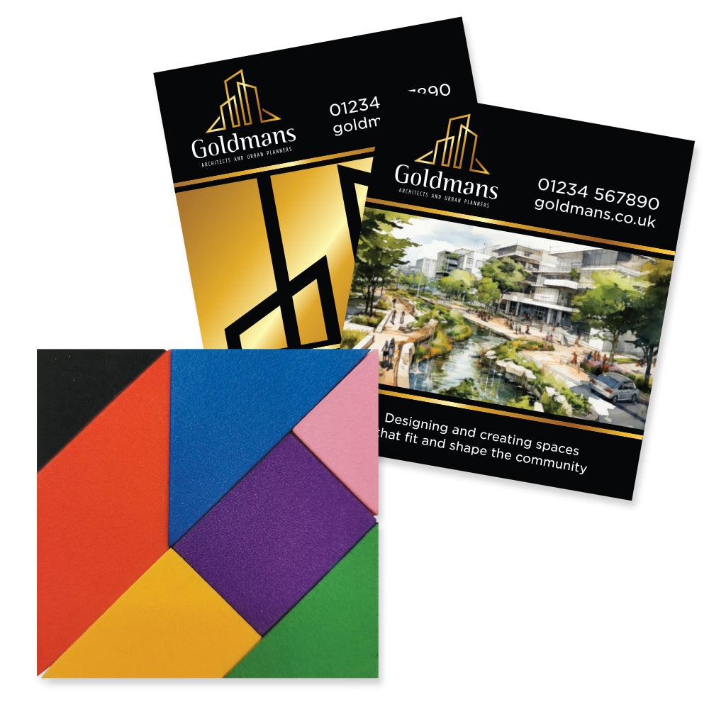 Puzzle consisting of 7 foam geometric shapes. Includes an A6 full colour insert printed with your details on the front and puzzle solutions on the reverse. Choose from 9 exciting foam colours!