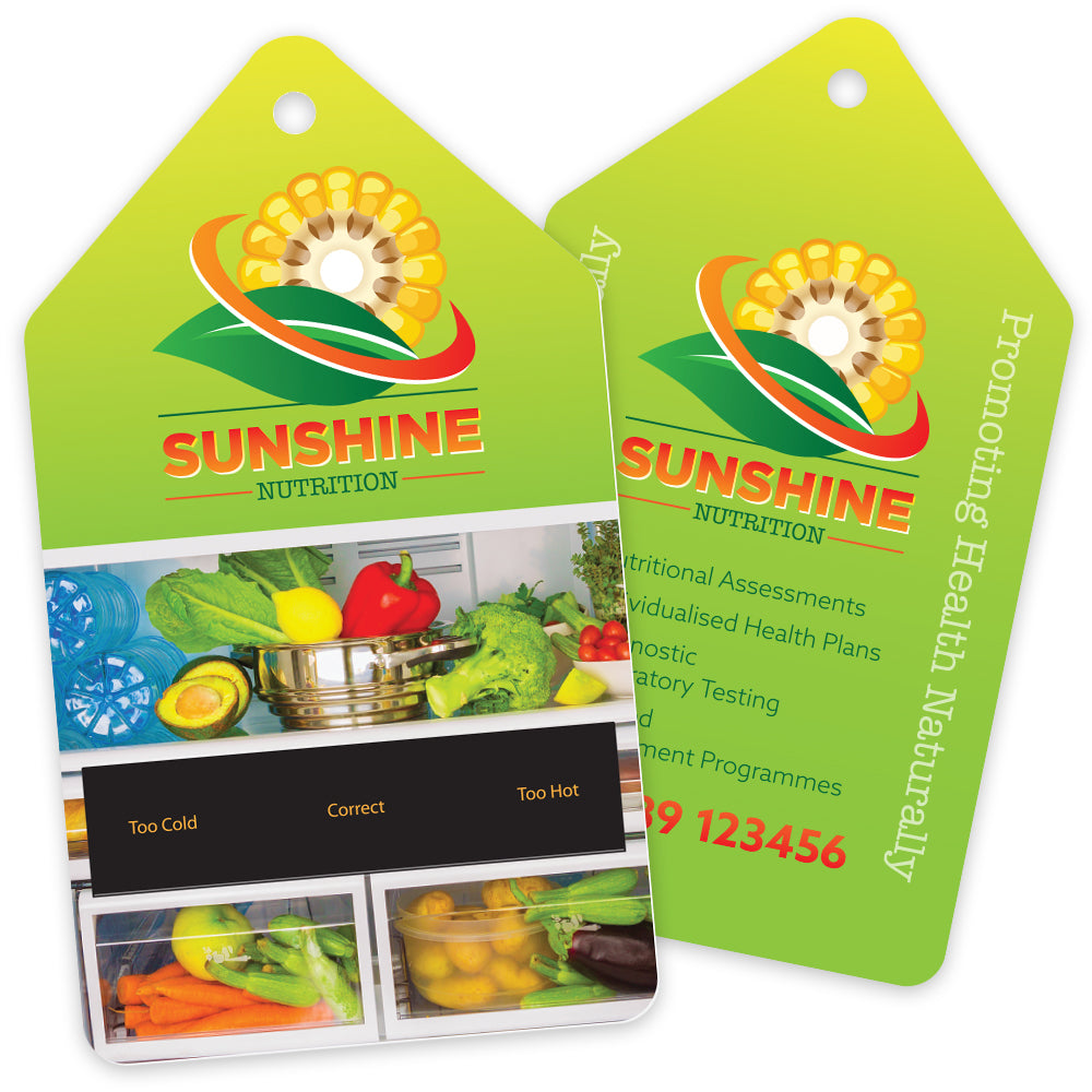 Test your fridge temperature with this colourful temperature gauge printed with your details on both sides.