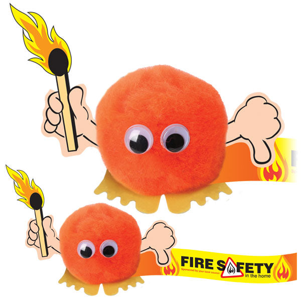 Fluffy pom pom holding a lit match. Ribbon printed with your promotional message in full colour. See pom colour section for the full range of pom colours.