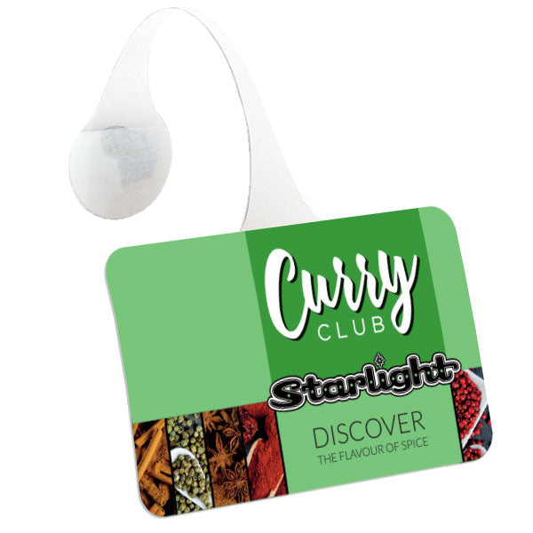 Low-cost novelty display item printed full colour and laminated. Fixed to a clear plastic wobbler arm with self adhesive sticky pad. 120 x 120mm and available in standard and bespoke shapes.
