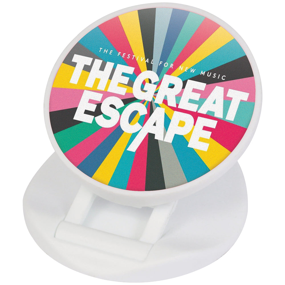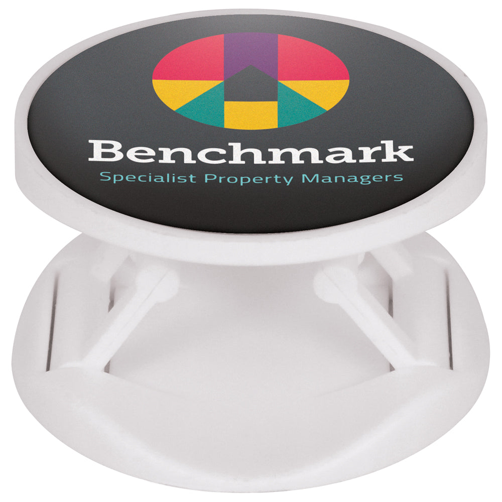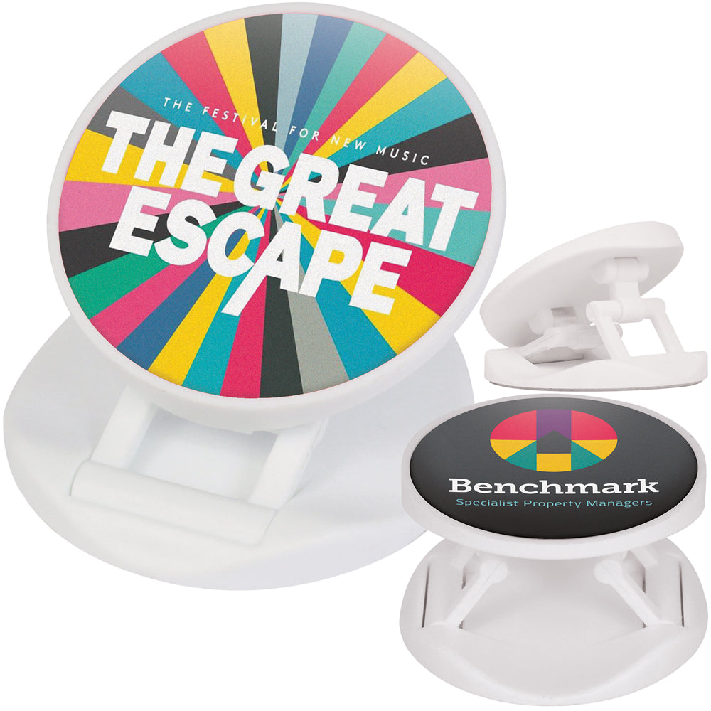 The hugely popular mobile Pop-up Phone Grip & Stand functions as a convenient stand so you can watch videos on the fly. They can be branded in full colour giving them huge promotional potential. They offer a secure grip so you can text with one hand, snap better photos and prevent dropping your mobile. They work effectively in landscape and portrait modes for watching videos, web surfing, texting, gaming, group photos, FaceTime and Skype. They allow your hand to relax while securely holding your phone - never drop your phone again from lost grip. They can be pushed and pulled whilst remaining firmly stuck onto your mobile device. A modern, practical and low cost promotional item.