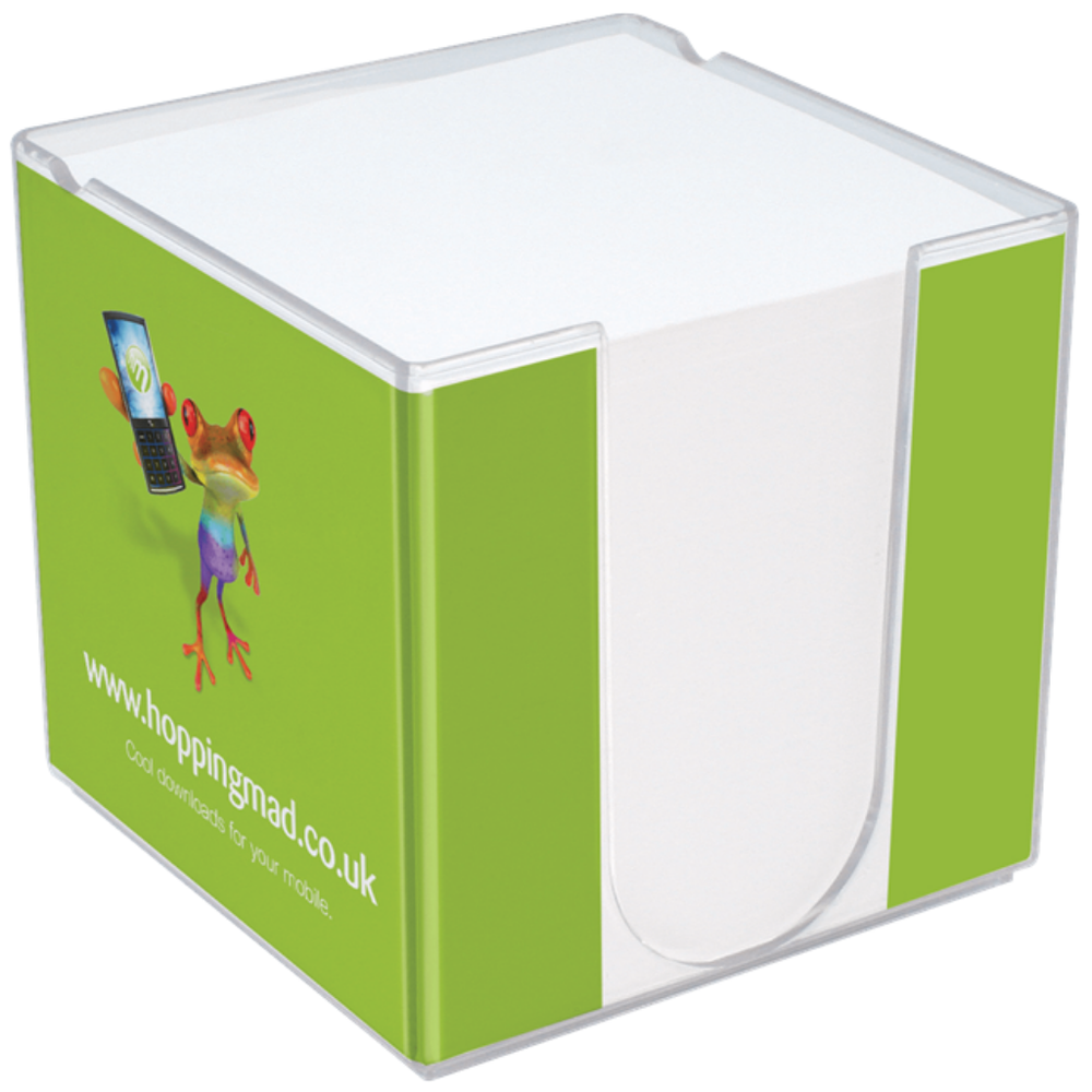 Maxi paper block holder containing approximately 500 sheets of white paper from a sustainable source with a 300gsm gloss insert. Incorporates pen rest. Individually shrink-wrapped & Bulk packed. Manufactured in the UK in our Carbon Zero factory.