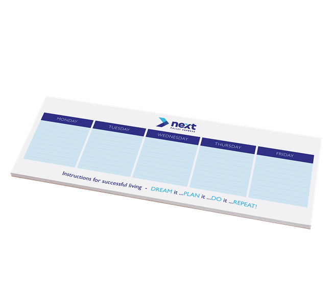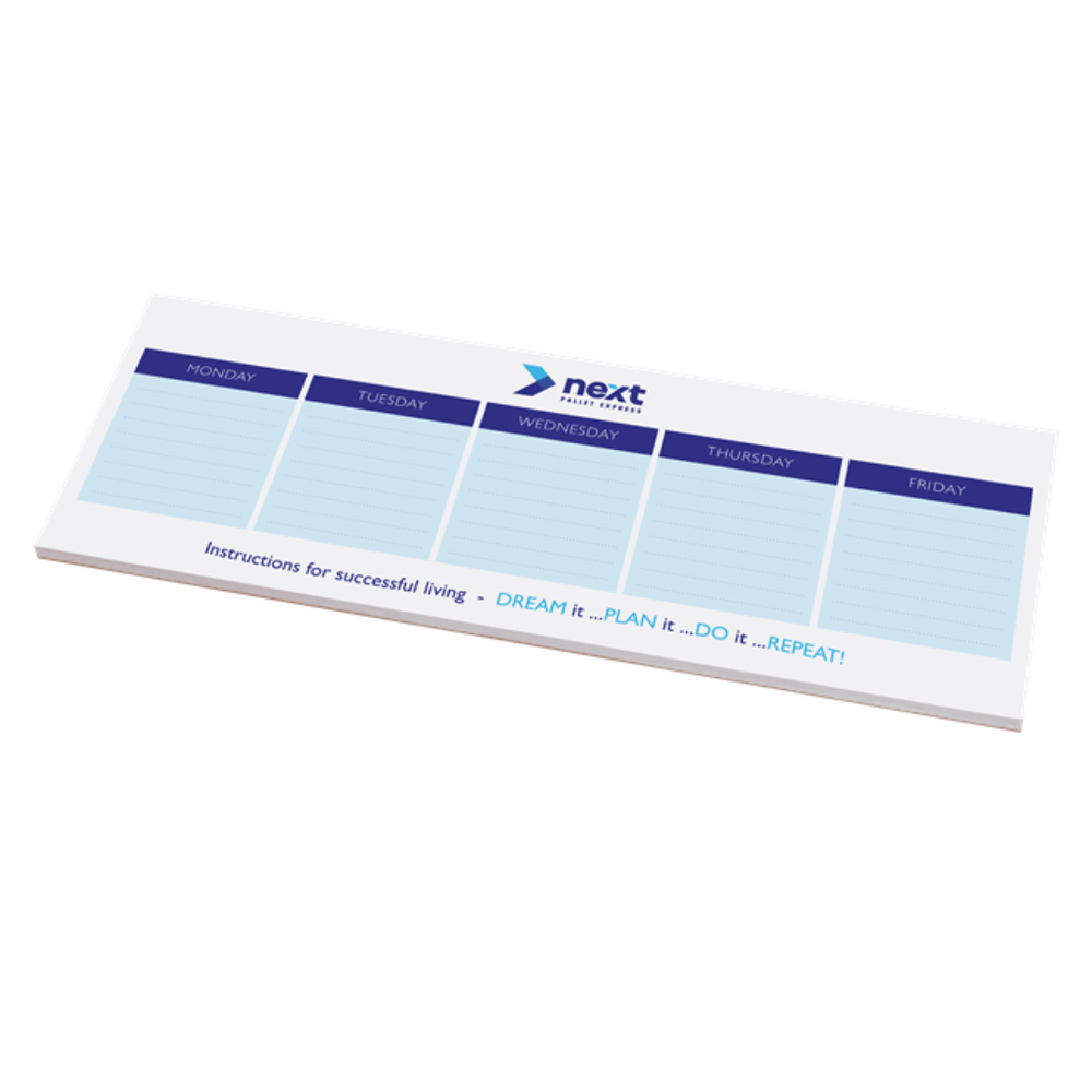 Laptop Notepad containing 50 sheets white paper from a sustainable source, glued on the long edge securely to a board back at foot. Manufactured in the UK in our Carbon Zero factory. Bulk packed.