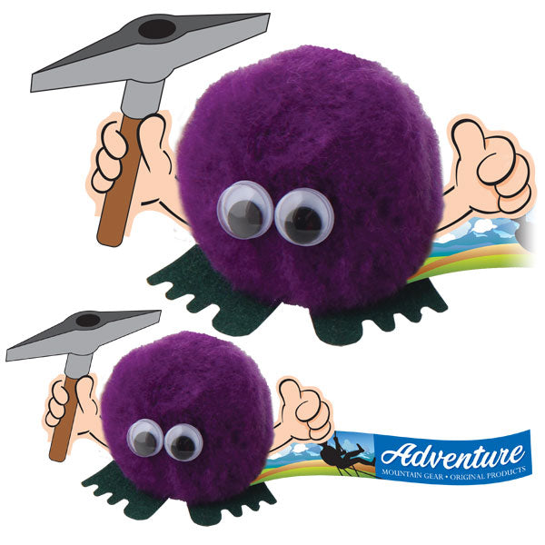 Fluffy pom pom holding an ice pick. Ribbon printed with your promotional message in full colour. See pom colour section for the full range of pom colours.