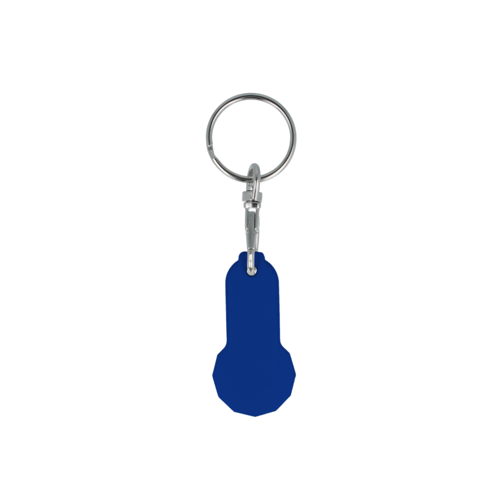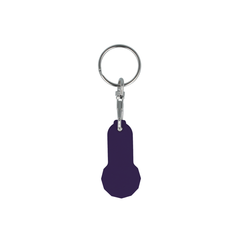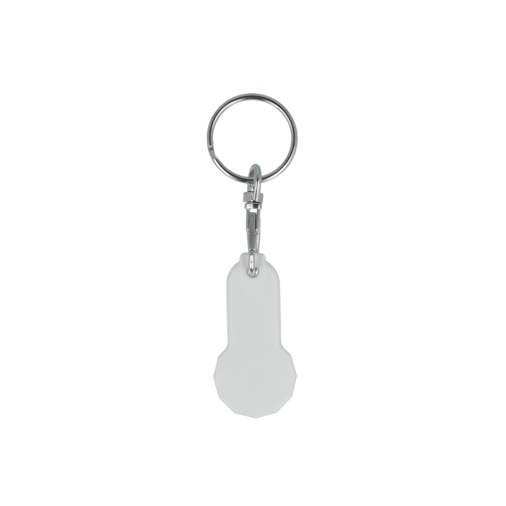 Euro Trolley coin keyring with additional larger branding area, complete with lobster clip fitting. Made in the UK from recycled plastic and digitally printed in full colour as standard.